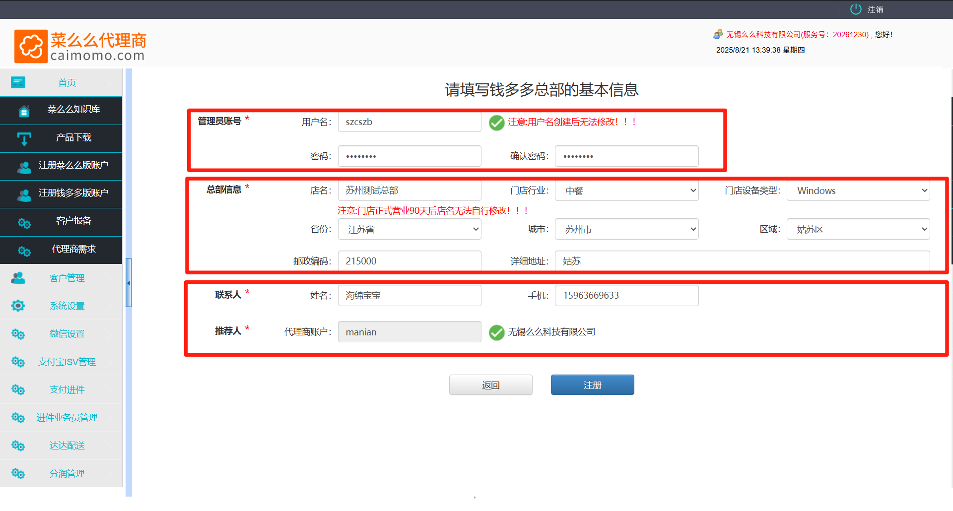 门店注册成功后,可以在代理商后台-客户管理-我的客户中查看